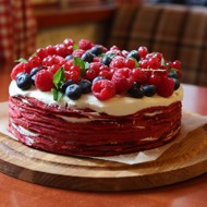 Recipe by chef Emily Johnson. Emily decided to combine the popular American dessert 'Red Velvet' with the Russian tradition of crepe-making. The result is a cake made with scarlet crepes and a snowy white cream, and for a complete impression, it's best to use berries in a similar color palette.