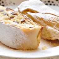 For the filling, mix the cottage cheese with sugar and raisins. Whip the egg whites into a fluffy foam and gently fold them into the cottage cheese mixture.