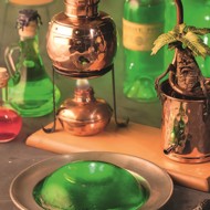 Pour the warm apple juice back into the pot. Squeeze out the gelatin, add it to the juice, and stir until fully dissolved. Add the green food coloring, mix well, pour into small cups or bowls, and refrigerate for at least 6 hours.