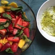 Serve the fruit salad with tarragon mascarpone.