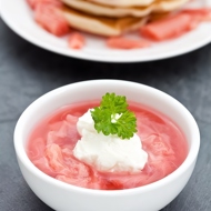 Puree the cooked rhubarb along with the broth, add sugar, and bring to a boil. Then thicken with starch dissolved in cold boiled water and set aside in a cool place.
