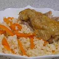 Bake the rice with meat in a preheated oven at 347°F for about 40 minutes.