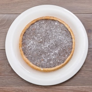 Line the bottom of the tart pan with parchment paper, spread the dough in the pan, prick the dough with a fork, add the filling, and bake in a preheated oven at 356°F for 25 minutes.