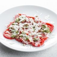Ripe Tomatoes with Sheep Cheese and Sorrel Pesto