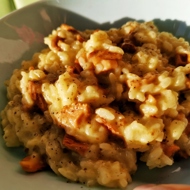 Mix the chanterelles vigorously and add the rice to the mushrooms.