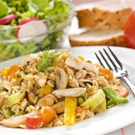 Add the rice and stir, then add the mixed frozen vegetables and chicken broth. Bring to a boil, reduce the heat, cover, and cook for another 15 minutes, stirring once.