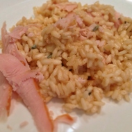 Finally, stir in most of the cheese, reserving some for serving. Allow the cheese to melt, remove the risotto from the heat, and stir in most of the ham (save some for serving). Add a piece of butter, cover the risotto, and let it rest for 2 minutes. Season with salt to taste and serve topped with the remaining ham and cheese.