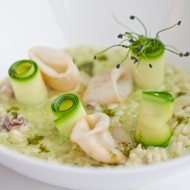 Risotto with Mini Squid, Zucchini, and Pesto Sauce