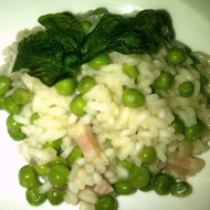 Remove from heat, add the remaining butter and Parmesan. Serve with mint leaves and freshly ground pepper.