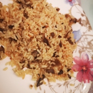 Rinse the rice, dry it, add it to the skillet, mix well, and let it warm up with the onion and butter.