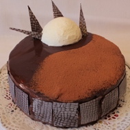 In the morning, remove the cake from the refrigerator, remove the frame, and smooth the cake with a hot knife. Dust with cocoa powder.