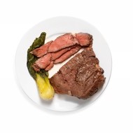 After an hour and a half, the roast, which has retained its juiciness and pink color, can be served at the table. If you enjoy a crispy crust, you can quickly sear the meat in a hot skillet.
