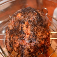 Cut the lemon into quarters and place it inside the chicken. Generously coat the chicken with the prepared sour cream-lemon sauce and sprinkle with freshly ground black pepper. If possible, let it marinate for about 10 minutes, but you can roast it immediately. Place it in a baking dish and put it in a preheated oven at 446°F. This is where the experiments begin. The thing is, I don't have an oven at all, and for several years I've been using an air fryer. Therefore, in my case, the chicken roasts for 1.5 hours at 482°F (since it cooks food only from the top). If you have an oven, start with 230 degrees for 40 minutes, then add 10 minutes until done.
