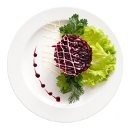 On 6 plates, place 2 leaves of lettuce each, arrange the beets on top, sprinkle with watercress and thinly sliced onion. Drizzle with the prepared dressing, sprinkle with walnuts, and serve.