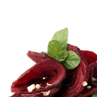 Preheat the oven to 392°F. Rinse the beets well and place them in a baking dish. Roast for about 45 minutes to 1 hour until tender. Cool and peel.