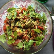 Finely chop the cilantro and green onion and add to the vegetables. Mix well.