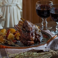 Place the meat in a baking dish, add a little water to the juice, cover with parchment paper and tightly with foil, and roast for 2.5 hours at 180°C. Before the meat is almost done (check with a skewer or fork), remove the parchment and foil and leave in the oven until golden brown.