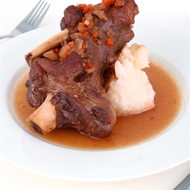 Slice the onion into rings and place on a baking tray. Lay the leg of lamb on top and drizzle with olive oil. Roast for 15 minutes. Reduce the temperature to 356°F and pour in 250 ml of wine. Roast for 1.5 hours or a bit longer. Add a little water as needed. Transfer the leg to a plate and let it rest for 10 minutes.