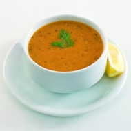 Transfer the vegetables to a blender and add half of the broth. Blend until smooth and pour into a pot. Add the remaining broth, season with salt and pepper. Bring to a boil and heat slightly. Remove from heat and add lemon juice. Serve, garnished with remaining cumin seeds.