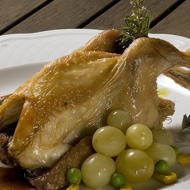 Brush the partridge halves with the glaze and return to the oven for another 10 minutes until the bird is cooked, basting it 2-3 more times during this time. Serve immediately.