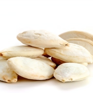 Cut the pumpkin in half and scoop out the seeds with a spoon. Rinse the seeds well under cold water, removing any strands.