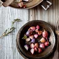 Preheat the oven to 356°F. Drizzle the radishes with olive oil and roast for about 20 minutes.