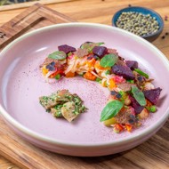 Mushroom picking in Penza is a true pleasure. The local forests are abundant with both white mushrooms and butter mushrooms, as well as chanterelles. Pickled mushrooms add a lively touch to all familiar salad compositions: from Olivier to vinaigrette. In fact, this salad is an author's version of vinaigrette, with the addition of pumpkin alongside beets and potatoes. All the vegetables are roasted instead of boiled to preserve more flavor. The dressing is interesting—a honey-mustard blend. This recipe was shared by John Smith, a chef at a local restaurant.