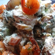 Roasted Vegetable Salad with Shrimp and Crème Fraîche Dressing