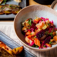 Pour the dressing into the vinaigrette. Stir well. Add the beetroot and gently mix again.