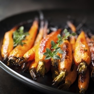Roasted young carrots with orange juice and ginger