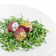 Carefully spread the mixture onto the bresaola, roll it tightly to form a roll.