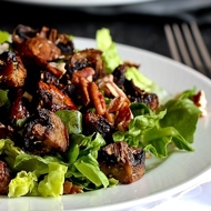 Add the lettuce to a large bowl and toss with the roasted mushrooms, toasted walnuts, and dressing.