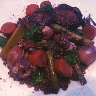 Place the lentils on a plate, topped with the rooster (chicken). Strain the sauce and serve separately.