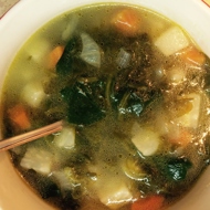 Pour hot water over the sautéed roots and boil for 5–7 minutes. Then add the washed and chopped sorrel and spinach, and cook for another 5–6 minutes.