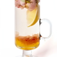 Cover freshly picked, just bloomed rose petals with sugar. Pour cognac and half a bottle of red wine over them. Seal tightly and place in a cool place for 1 hour.