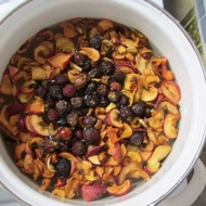 Strain the compote; the berries and apples will no longer be needed.