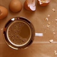 Pour the hot coffee into the cups with the yolks, and quickly stir until foam forms.