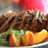 Serve the rump steak on a plate, drizzled with melted butter. For a side dish, you can use fluffy grains, boiled legumes, fried eggplant, or potatoes. Additionally, serve fresh or canned vegetables.