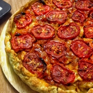 Spread the filling over the dough. Top with slices of tomatoes and sprinkle with cheese. Bake for 40 minutes at 356°F.