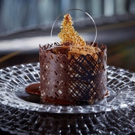Prepare the coriander sauce: Bring the cream to a boil and remove from heat, then add the coriander and let it steep for half an hour. Strain the mixture and incorporate the melted chocolate. The cream and chocolate should be at the same temperature for proper blending.