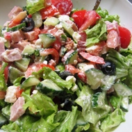 Mix the salad in a covered bowl, adding salt and pepper to taste.