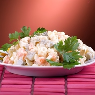Finely chop the egg whites, add the onion, fish, and chopped crab sticks. Mix with a small amount of mayonnaise and place in a salad bowl.