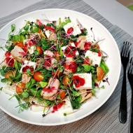 Garnish the salad with microgreens.