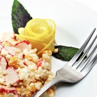 Salad with croutons and imitation crab