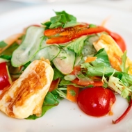 Drizzle the grill pan with olive oil and quickly fry the cheese.