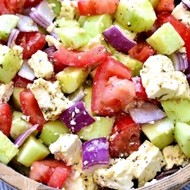 Salad with Tomatoes, Cucumbers, and Feta Cheese