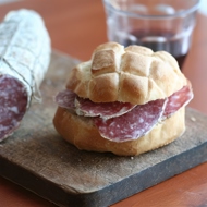 Slice the pancetta (or any white bread or roll, not sweet) and salami to your desired thickness. Make a sandwich.