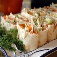 Roll it up into a log. Wrap it in foil and place it in the refrigerator for 1–2 hours. Remove the foil from the roll and cut it into serving pieces.