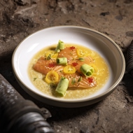 Salmon Ceviche with Shiso Sauce and Kumquat