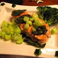 Salmon Fillet with Cucumber and Fried Sage Leaves